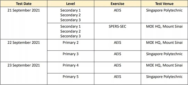 新加坡教育部(MOE)官網(wǎng)正式對(duì)外公布2021年AEIS考試定于2021年9月21日、22日和23日舉行,報(bào)名時(shí)間將于7月7日開始,報(bào)名直到8月26日截止。