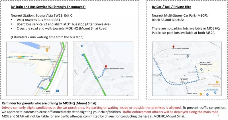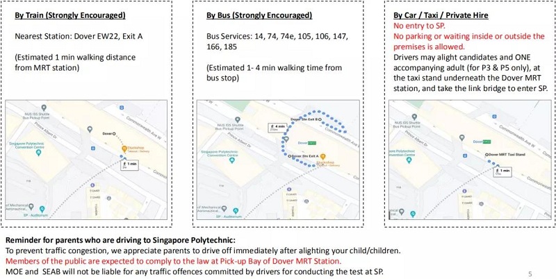 今年的考試地點(diǎn)根據(jù)考試不同年級(jí)組分為兩個(gè)MOE HQ(Mount Sinai Road)和Singapore Polytechnic