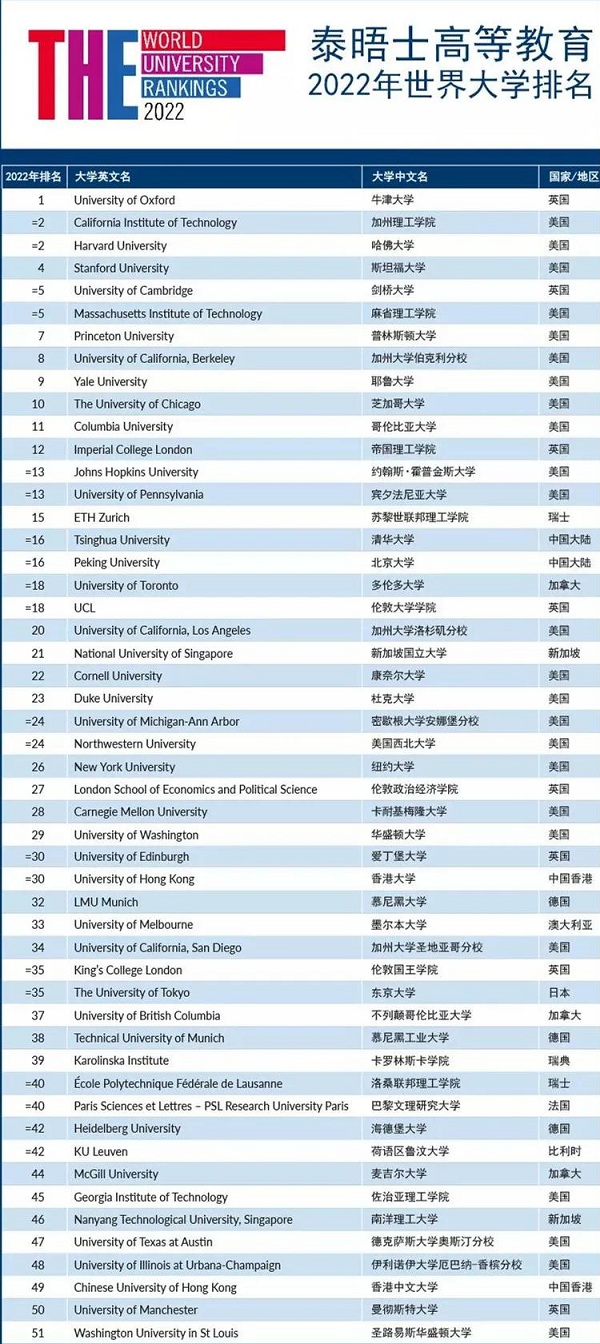北京時間2021年9月2日早上7點(diǎn),泰晤士高等教育發(fā)布了2022年度世界大學(xué)排名。