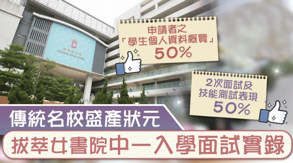 拔萃女書院2次面試成績占比50%,學(xué)業(yè)、課外成績等占50%
