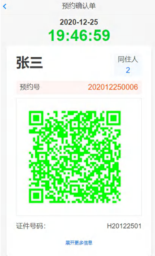 預(yù)約成功后,可在預(yù)約通關(guān)日期當(dāng)天點擊「個人中心--預(yù)約確認(rèn)單」查看確認(rèn)單詳情。