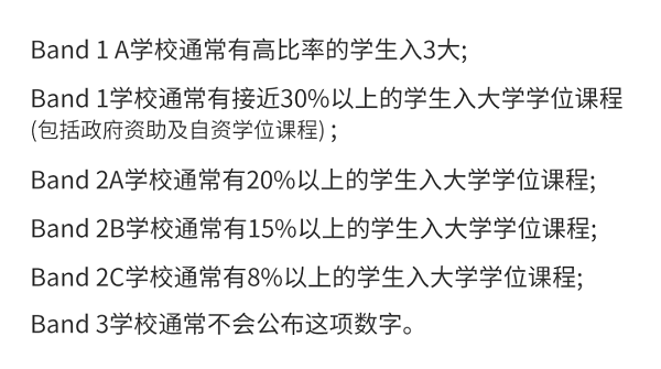 Band 1中學(xué)當(dāng)然是很多家長的首選,畢竟有利于以后升學(xué),有家長統(tǒng)計了各個等級中學(xué)的升學(xué)率,具有一定的參考性: