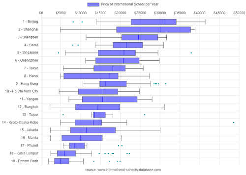 據(jù)International Schools Database發(fā)布的亞洲國際學(xué)校學(xué)費排名,北京、上海、深圳占據(jù)了榜單前3名,香港則排第9。
