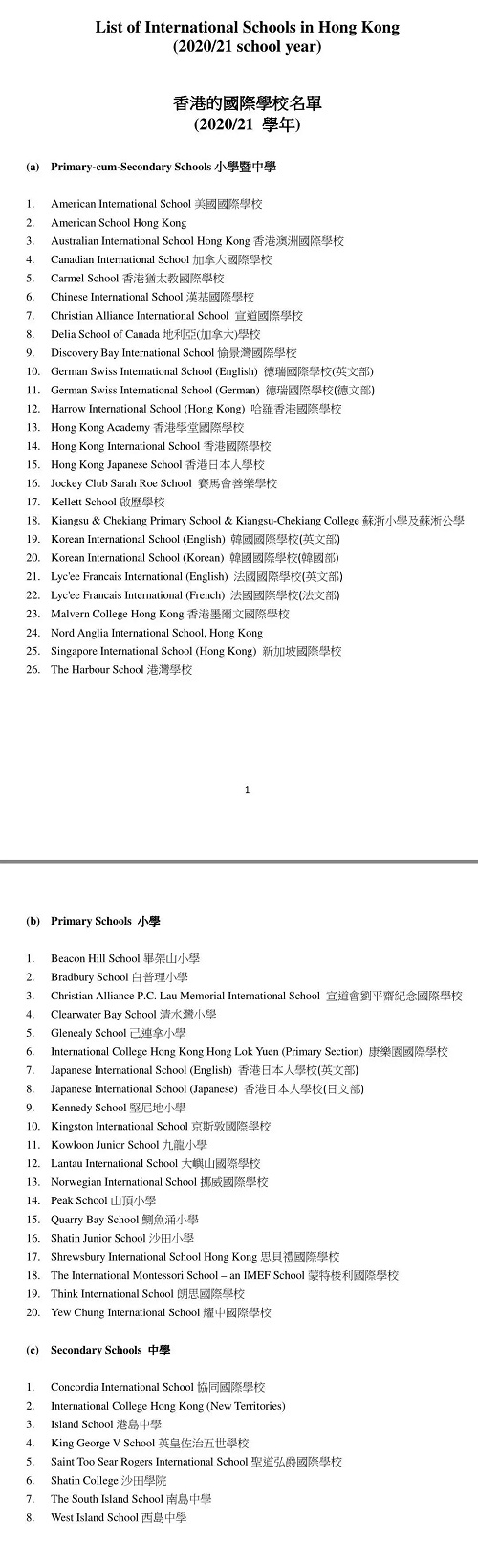 據(jù)香港教育統(tǒng)籌局資料,截至2019-2020學(xué)年,香港國際學(xué)校已經(jīng)達(dá)到54所。