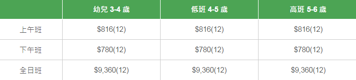 學(xué)校有參加「幼稚園教育計(jì)劃」,以下列出扣減政府資助后不同班別的全年學(xué)費(fèi)和期數(shù)。