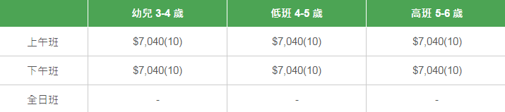 學(xué)校有參加「幼稚園教育計(jì)劃」,以下列出扣減政府資助后不同班別的全年學(xué)費(fèi)和期數(shù)。